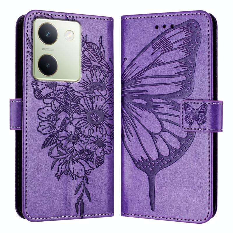 For vivo Y100 5G Global Embossed Butterfly Leather Phone Case(Light Purple)