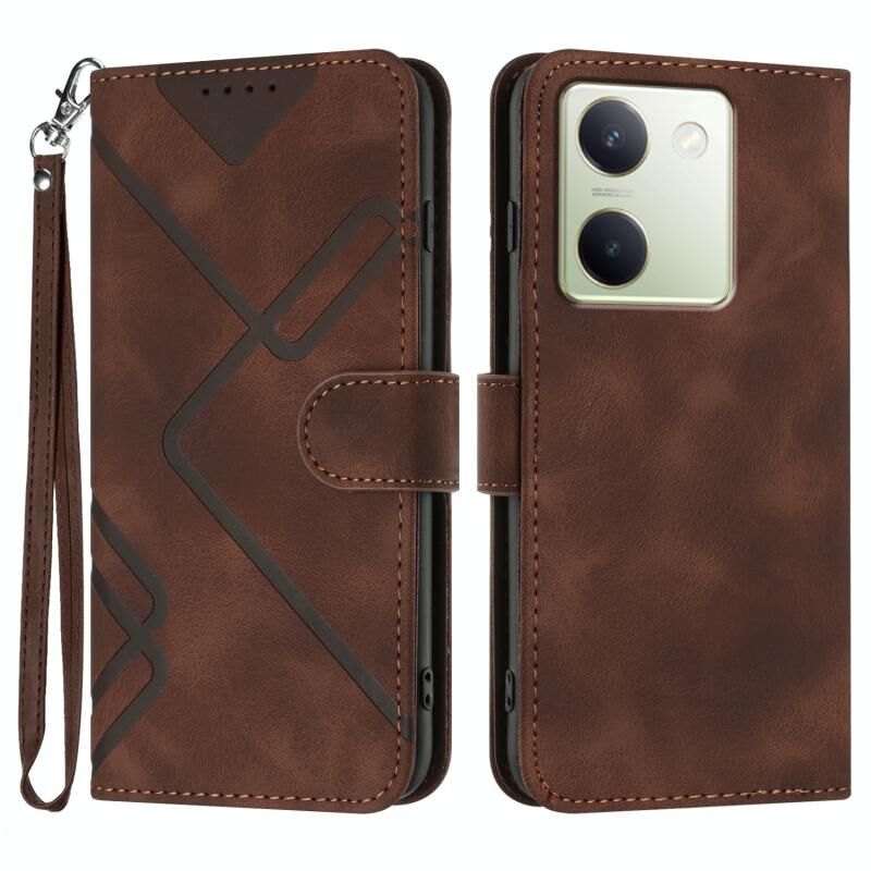 For vivo Y100 5G Global Line Pattern Skin Feel Leather Phone Case(Coffee)