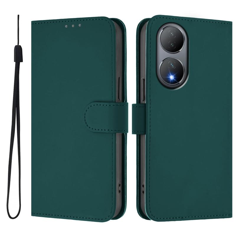 For vivo Y100 5G Global Skin Feel Solid Color Leather Phone Case with Lanyard(Dark Green)