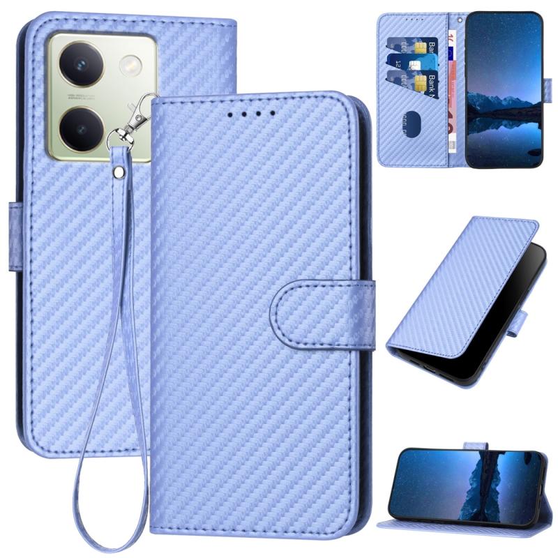 Θήκη τηλεφώνου από δέρμα με κούμπωμα από ανθρακονήματα και λουρί για vivo Y100 5G Global YX0070 (Κόκκινο)
