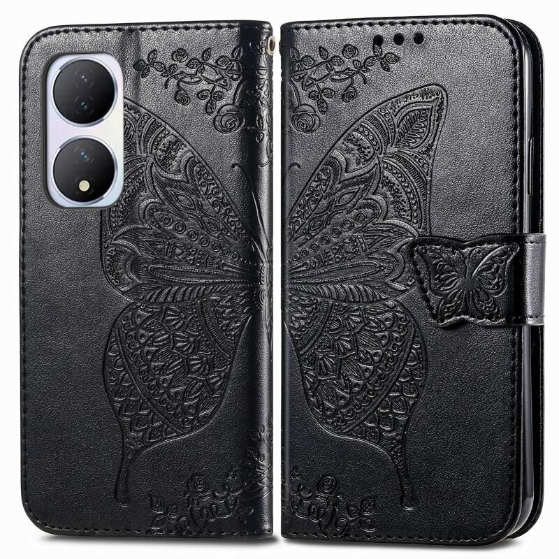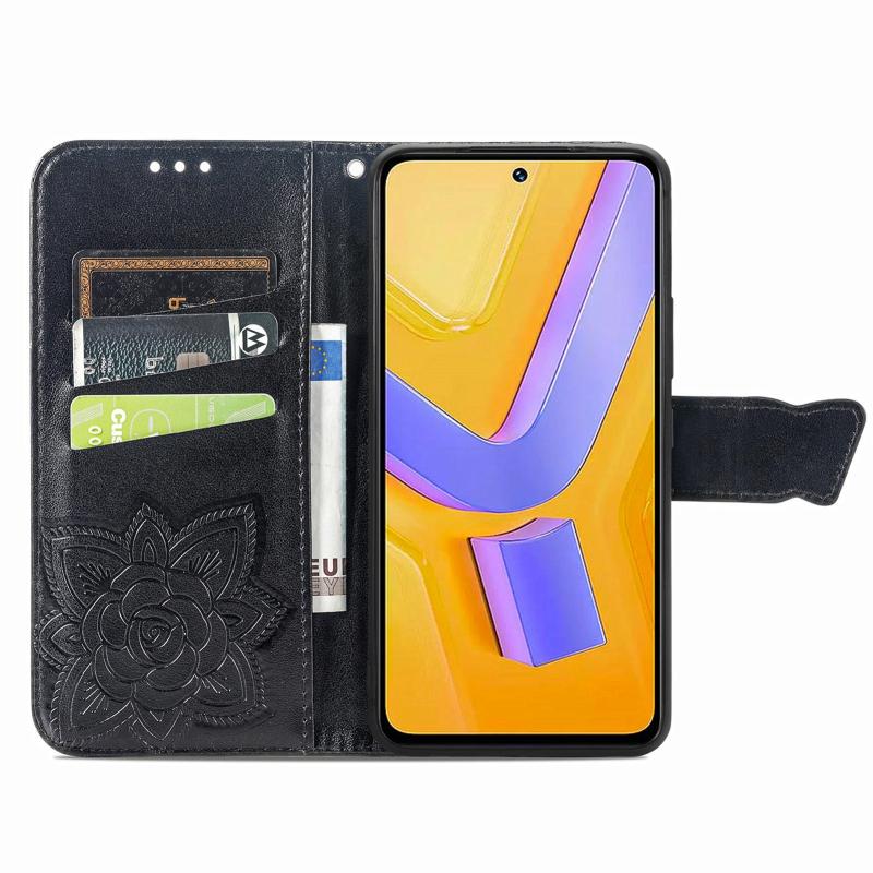 Θήκη δερμάτινη με ανάγλυφο σχέδιο πεταλούδας για vivo Y100 5G (Μαύρο)