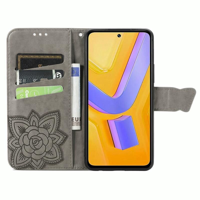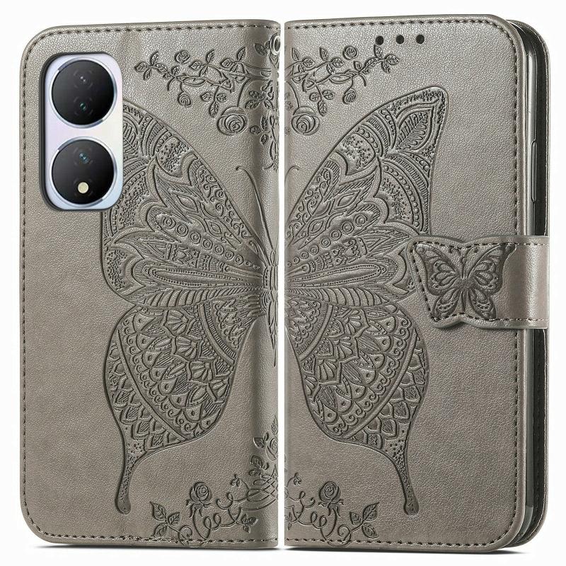 Θήκη δερμάτινη με ανάγλυφο σχέδιο πεταλούδας για vivo Y100 5G (Γκρι)
