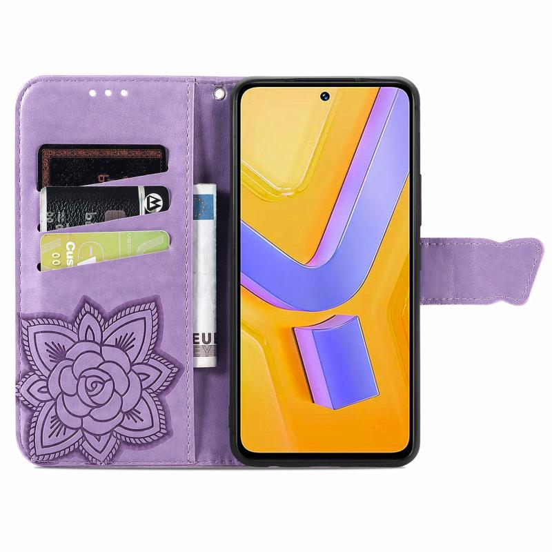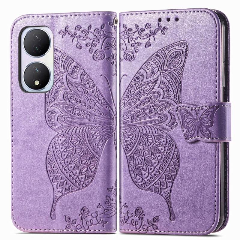 Θήκη δερμάτινη με ανάγλυφο σχέδιο πεταλούδας για vivo Y100 5G (Λεβάντα)