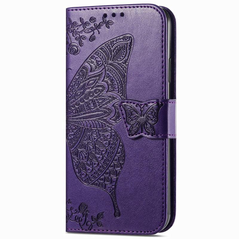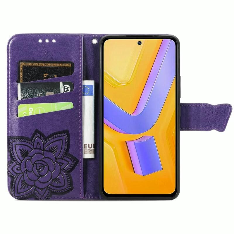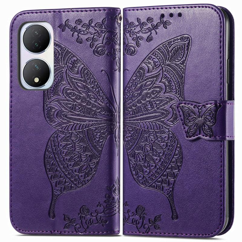 Θήκη δερμάτινη με ανάγλυφο σχέδιο πεταλούδας για vivo Y100 5G (Μωβ)