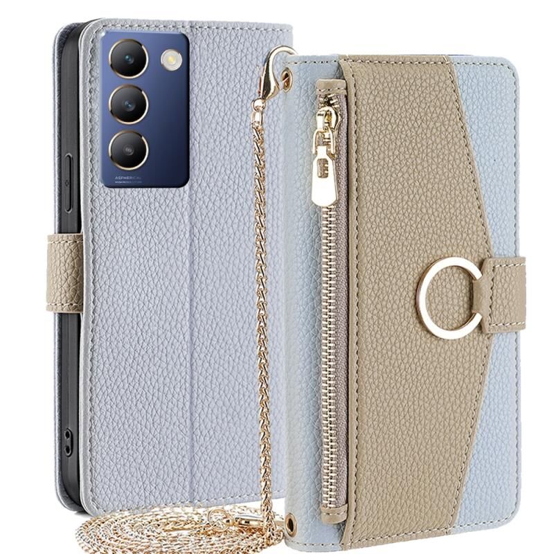 Θήκη τηλεφώνου για vivo Y100 5G IDN, δερμάτινη με υφή λύτσι (Μπλε)