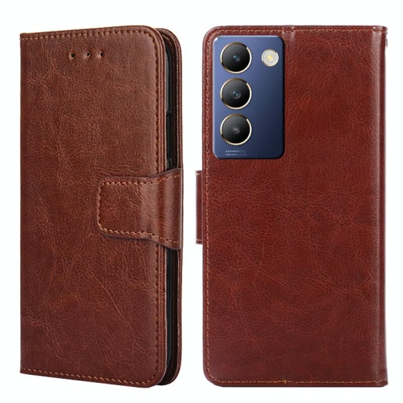 Για το vivo Y100 5G IDN Crystal Υφή δερμάτινη θήκη τηλεφώνου (καφέ)