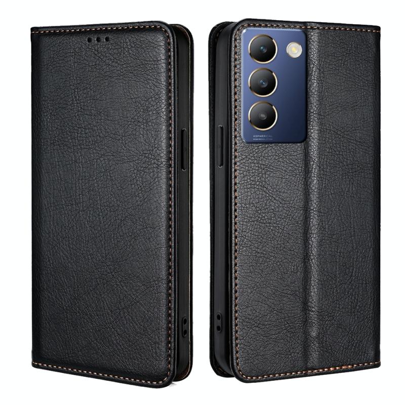 Θήκη τηλεφώνου από μαγνητικό δέρμα με γυαλιστερό λάδι και συμπαγή χρώματα για vivo Y100 5G IDN (Μαύρο)