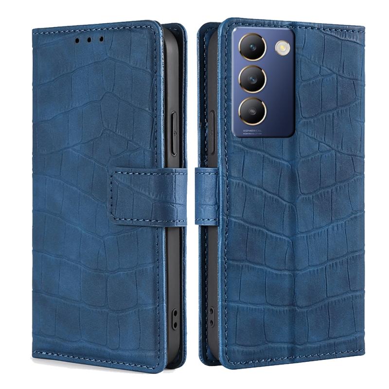 For vivo Y100 5G IDN Skin Feel Crocodile Magnetic Clasp Leather Phone Case(Blue)