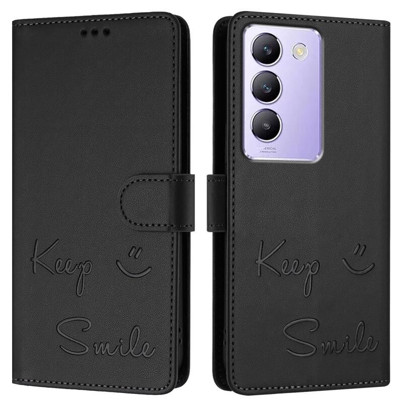 Για vivo Y100 5G IDN Χαμόγελο ανάγλυφο RFID δερμάτινη θήκη τηλεφώνου (Μαύρο)