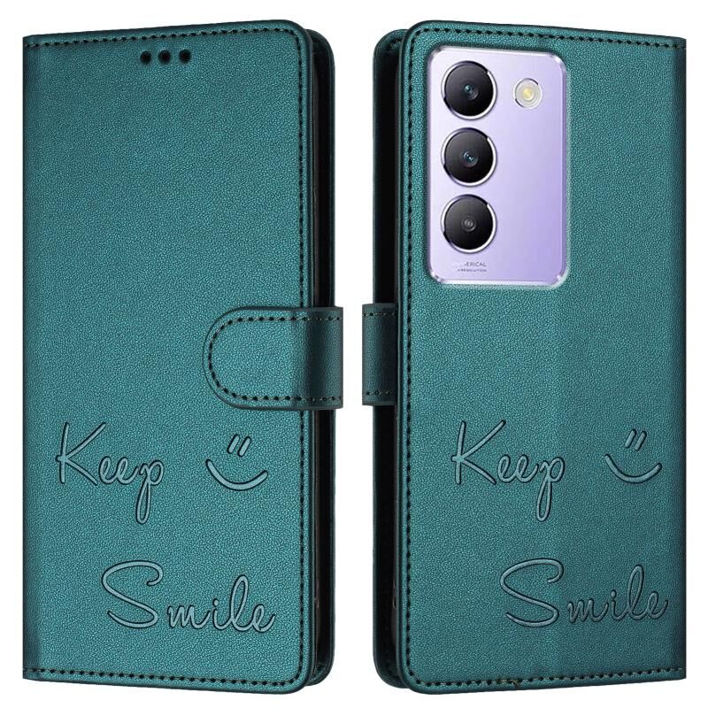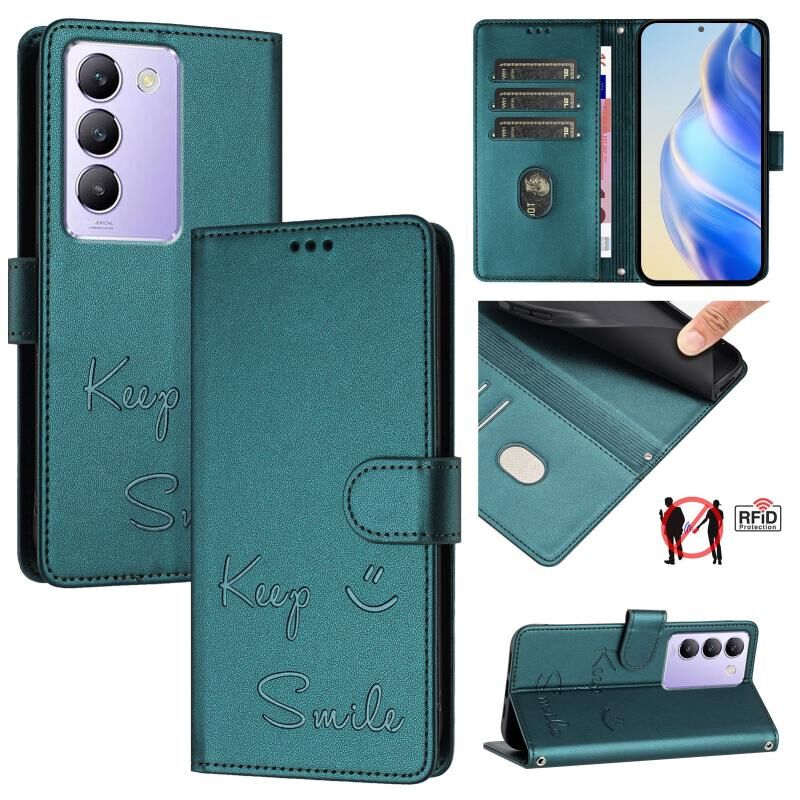 Για vivo Y100 5G IDN Χαμόγελο ανάγλυφο RFID δερμάτινη θήκη τηλεφώνου (Peacock Green)