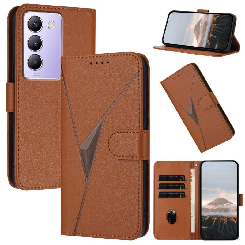 Για vivo Y100 5G IDN Triangle Pattern Πόρπη κούμπωμα δέρμα τηλέφωνο υπόθεση (καφέ)