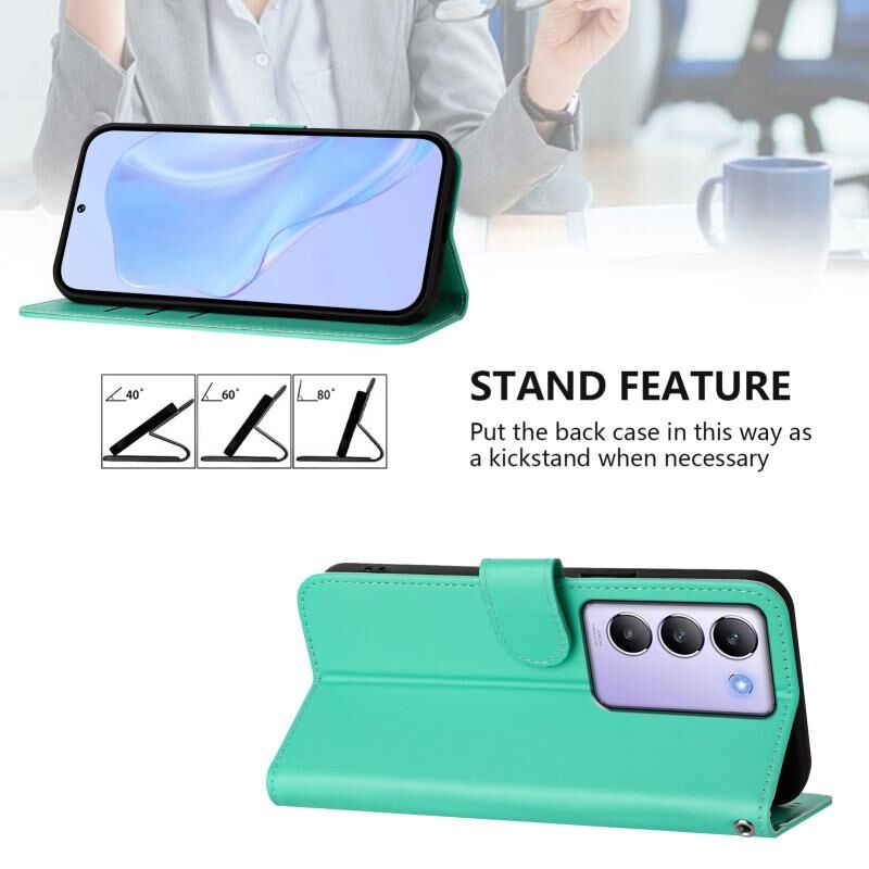Θήκη τηλεφώνου από δέρμα με συμπαγή χρώματα και αίσθηση δέρματος για vivo Y100 5G IDN / V40 SE 5G με κορδόνι (Καφέ)