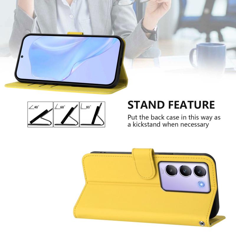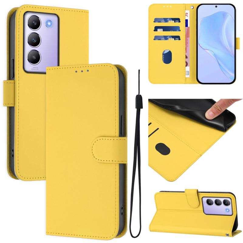 For vivo Y100 5G IDN / V40 SE 5G Skin Feel Solid Color Leather Phone Case with Lanyard(Lemon Yellow)
