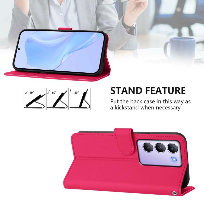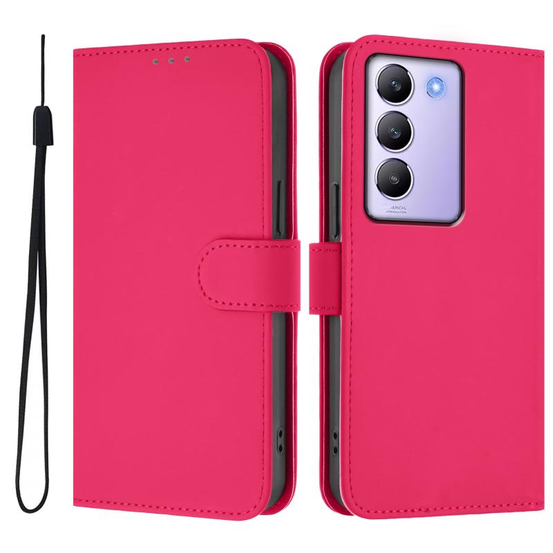 Θήκη τηλεφώνου από δέρμα με συμπαγή χρώματα και αίσθηση δέρματος για vivo Y100 5G IDN / V40 SE 5G με κορδόνι (Καφέ)