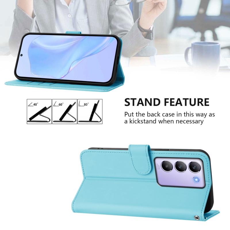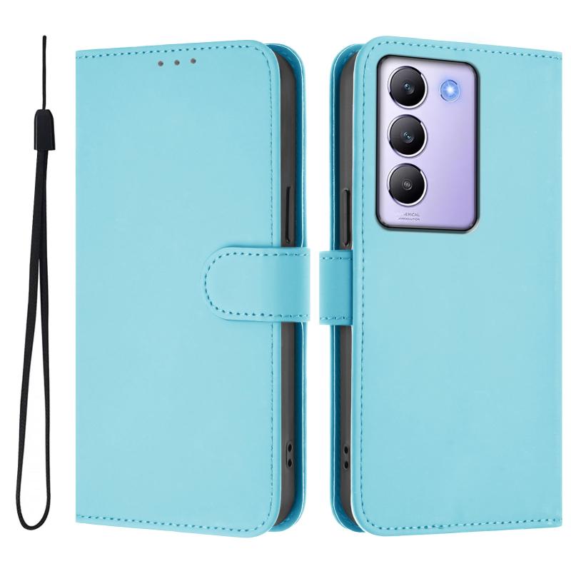 For vivo Y100 5G IDN / V40 SE 5G Skin Feel Solid Color Leather Phone Case with Lanyard(Sky Blue)