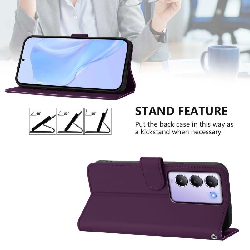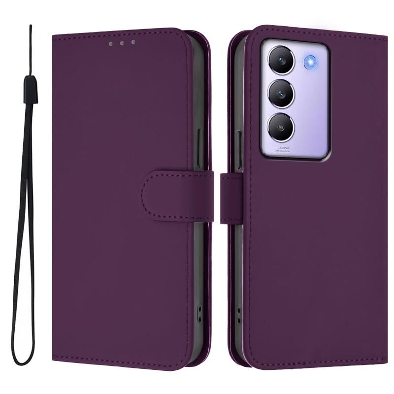 Θήκη τηλεφώνου από δέρμα με συμπαγή χρώματα και αίσθηση δέρματος για vivo Y100 5G IDN / V40 SE 5G με κορδόνι (Μωβ)