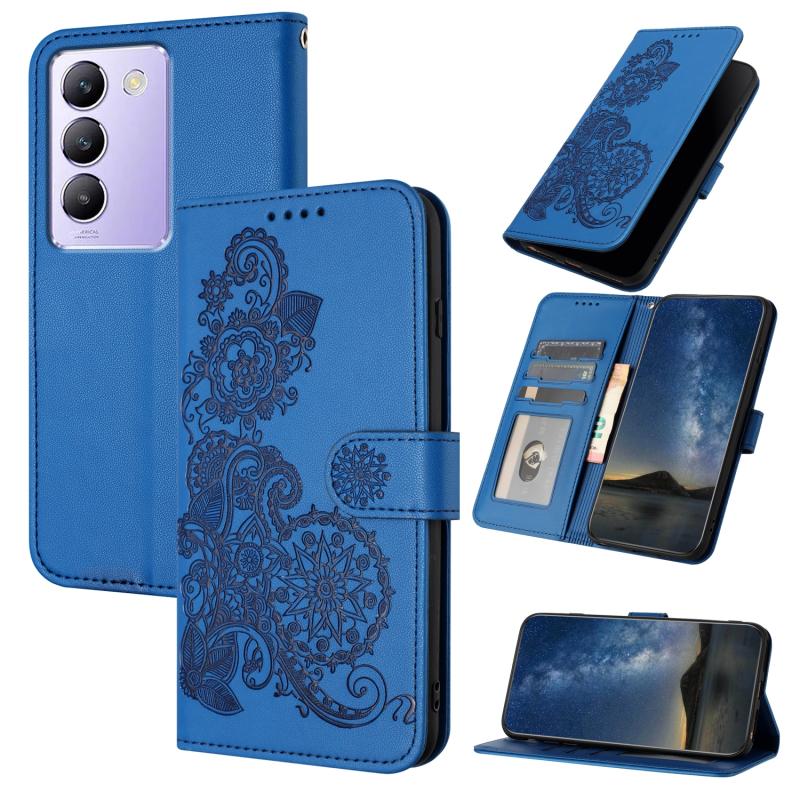 For vivo Y100 5G IDN/Y200e 5G Global Datura Flower Embossed Flip Leather Phone Case(Blue)