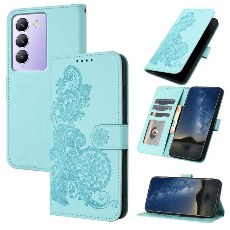 Για vivo Y100 5G IDN / Y200e 5G Παγκόσμια Datura Λουλούδι ανάγλυφο Flip δερμάτινη θήκη τηλεφώνου (γαλάζιο)