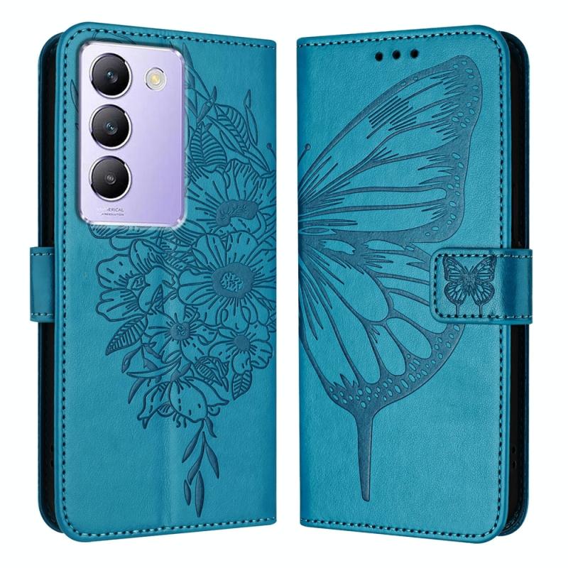For vivo Y100 5G IDN / Y200e 5G Global Embossed Butterfly Leather Phone Case(Blue)