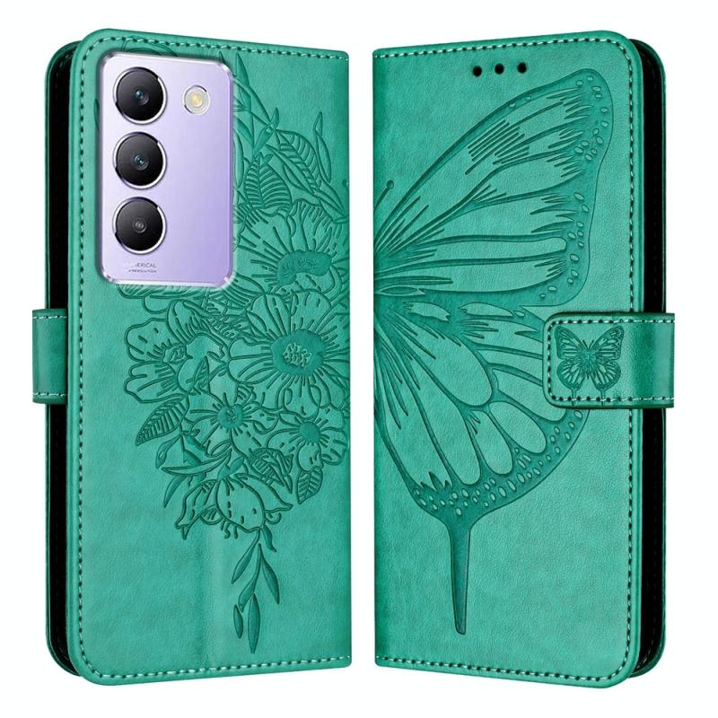 For vivo Y100 5G IDN / Y200e 5G Global Embossed Butterfly Leather Phone Case(Green)