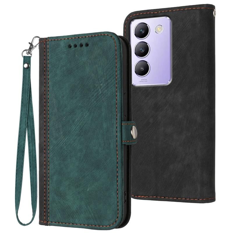 For vivo Y100 5G IDN/Y200e 5G Global Side Buckle Double Fold Hand Strap Leather Phone Case(Dark Green)