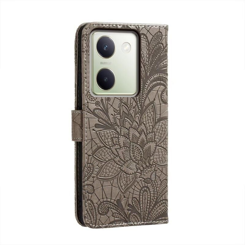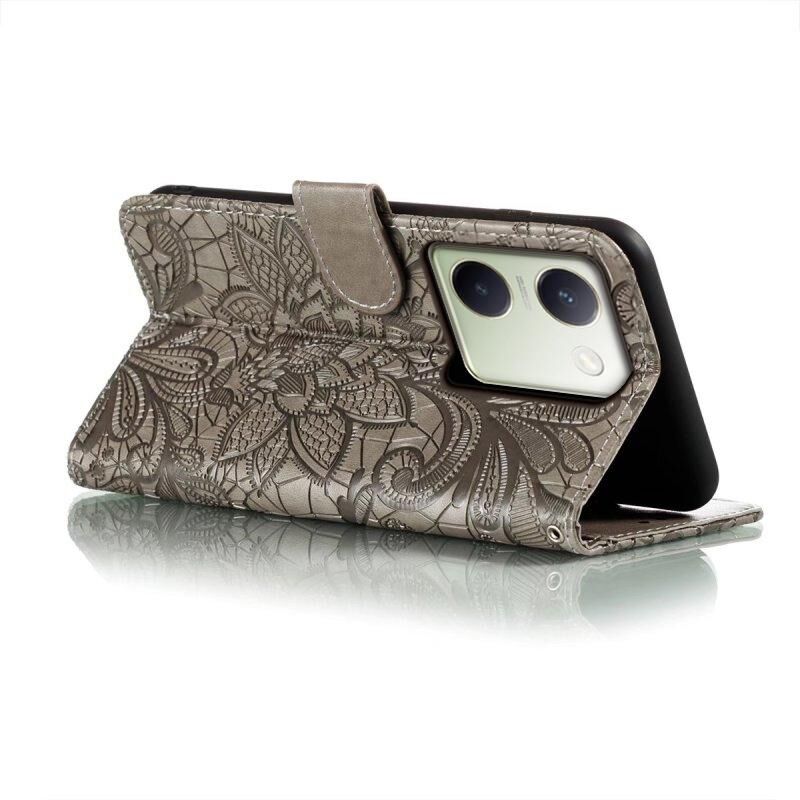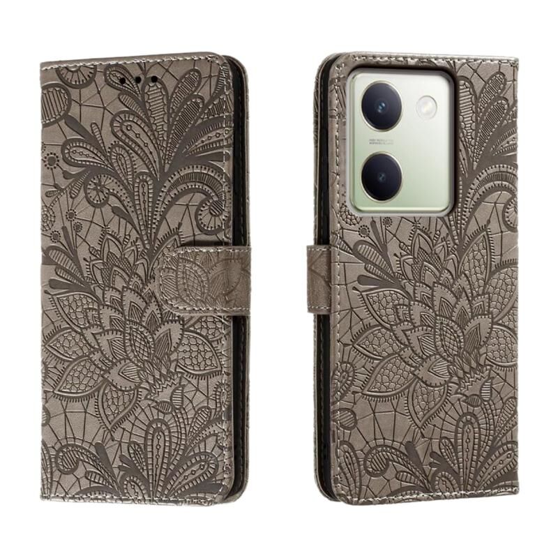 Για το vivo Y100 5G Lace Flower ανάγλυφο Flip δερμάτινη θήκη τηλεφώνου (Γκρι)