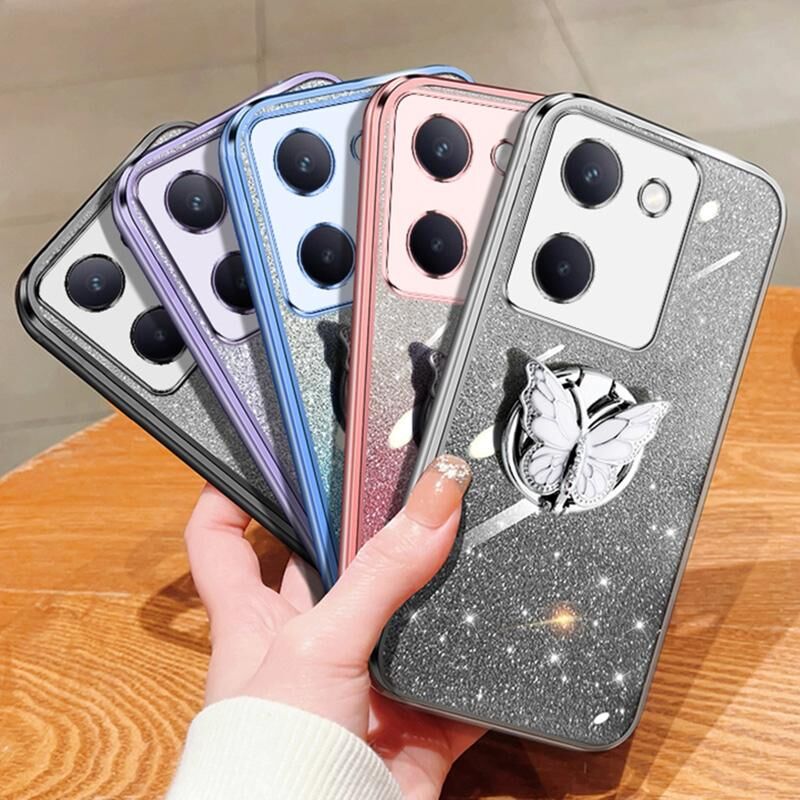 Για το vivo Y100 5G Επιμεταλλωμένο διαβάθμιση Glitter πεταλούδα κάτοχος TPU τηλέφωνο υπόθεση (Sierra Blue)
