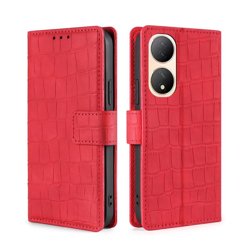 For vivo Y100 5G Skin Feel Crocodile Magnetic Clasp Leather Phone Case(Red)