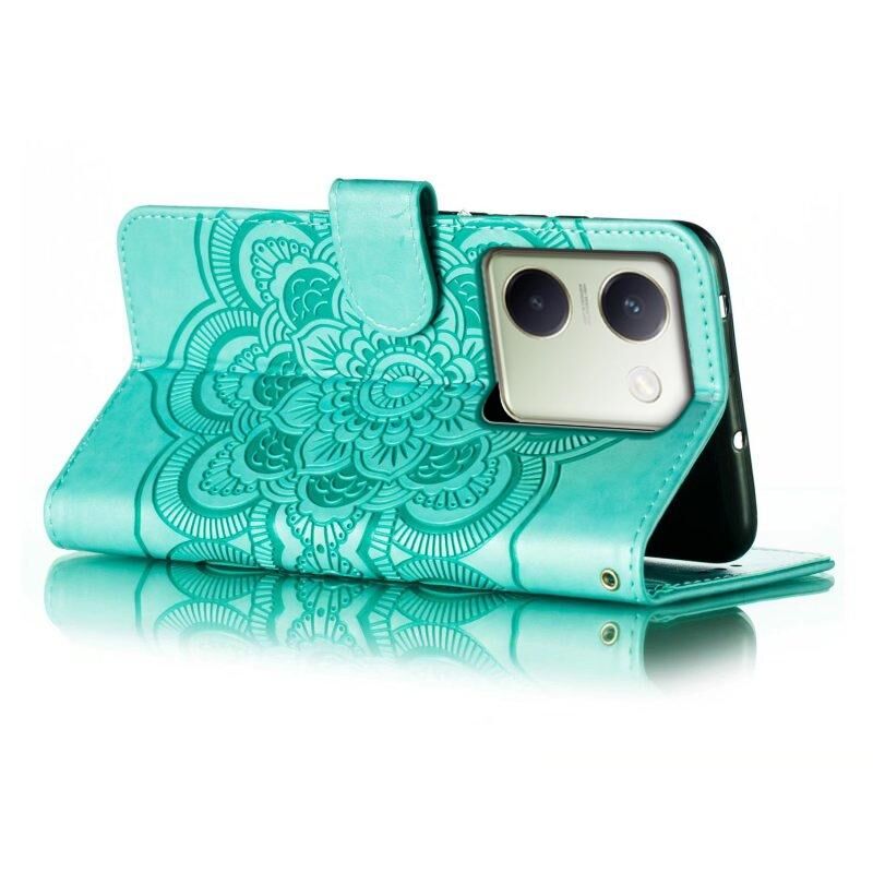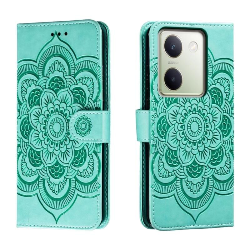 Για vivo Y100 5G Sun Mandala ανάγλυφο μοτίβο τηλέφωνο δερμάτινη θήκη (πράσινο)