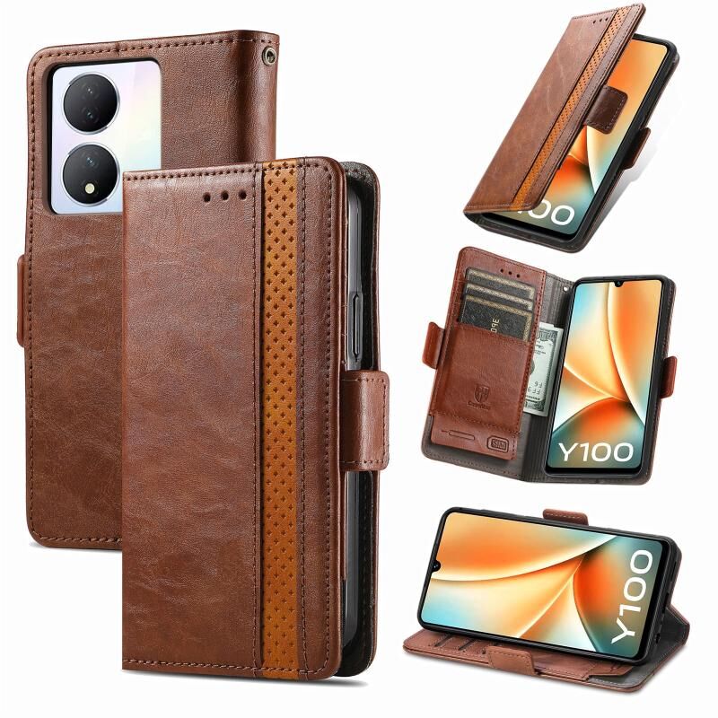 Για vivo Y100 CaseNeo Splicing Διπλή μαγνητική πόρπη δερμάτινη θήκη τηλεφώνου (καφέ)