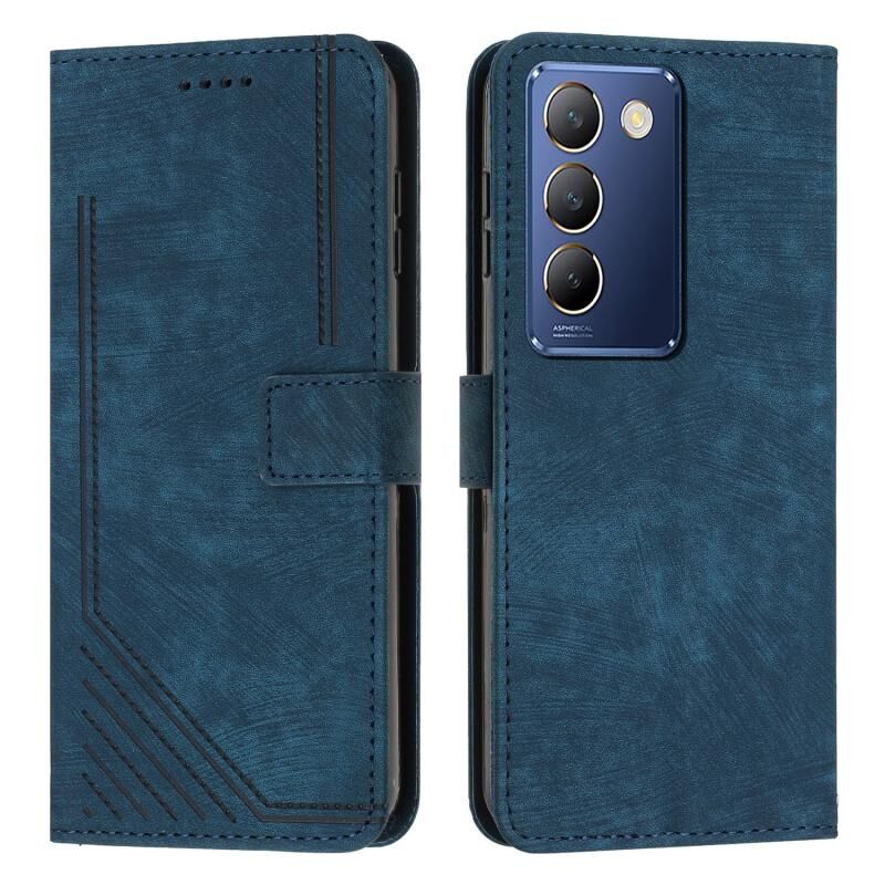 Θήκη τηλεφώνου από δέρμα με σχέδιο ραβδώσεων και λουρί για vivo Y100 IDN (Καφέ)