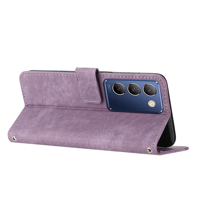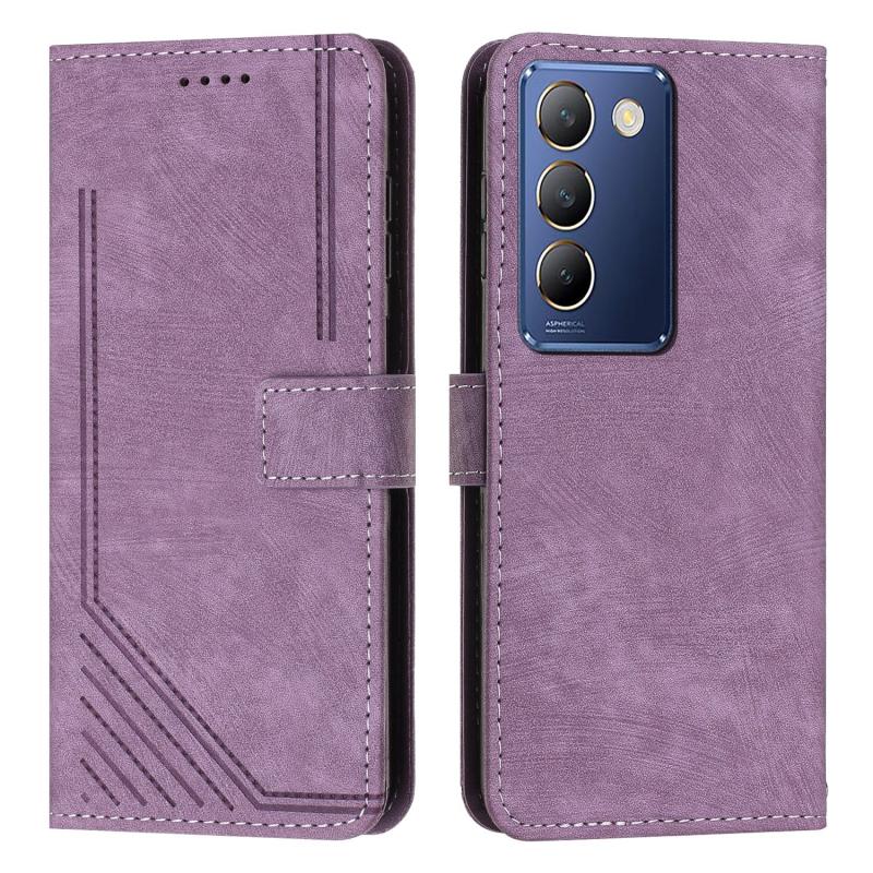 For vivo Y100 IDN Skin Feel Stripe Pattern Leather Phone Case with Lanyard(Purple)