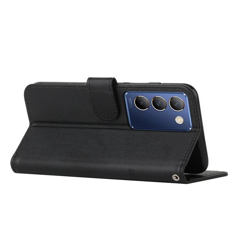 For vivo Y100 IDN Stitching Calf Texture Buckle Leather Phone Case(Black)