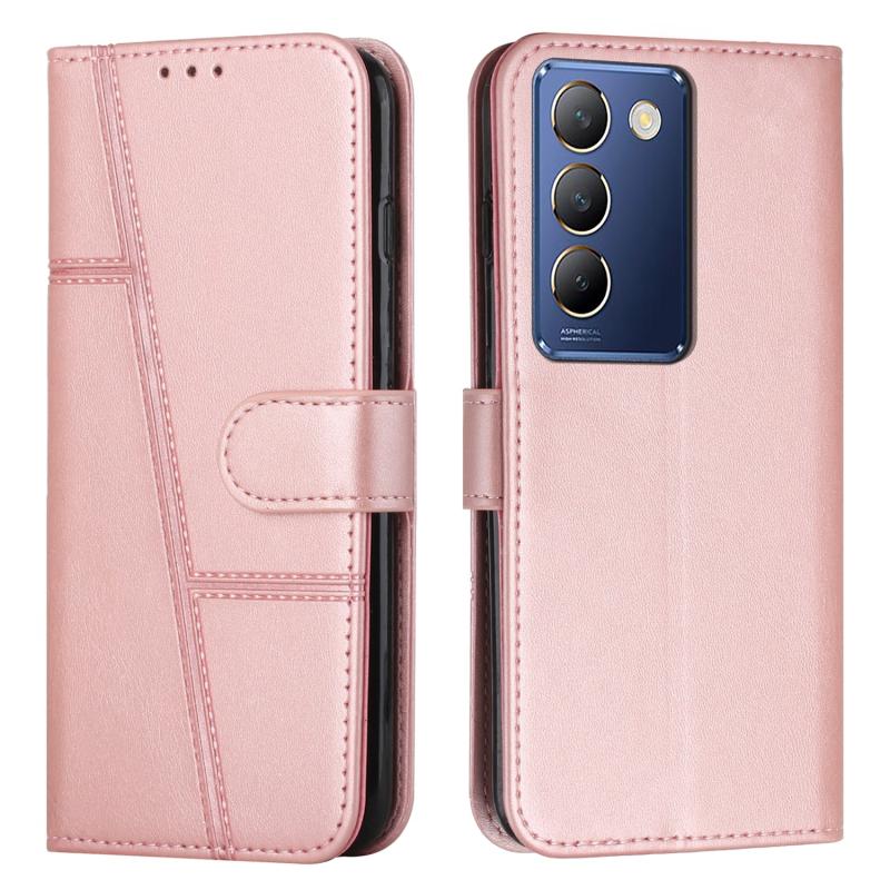 For vivo Y100 IDN Stitching Calf Texture Buckle Leather Phone Case(Pink)