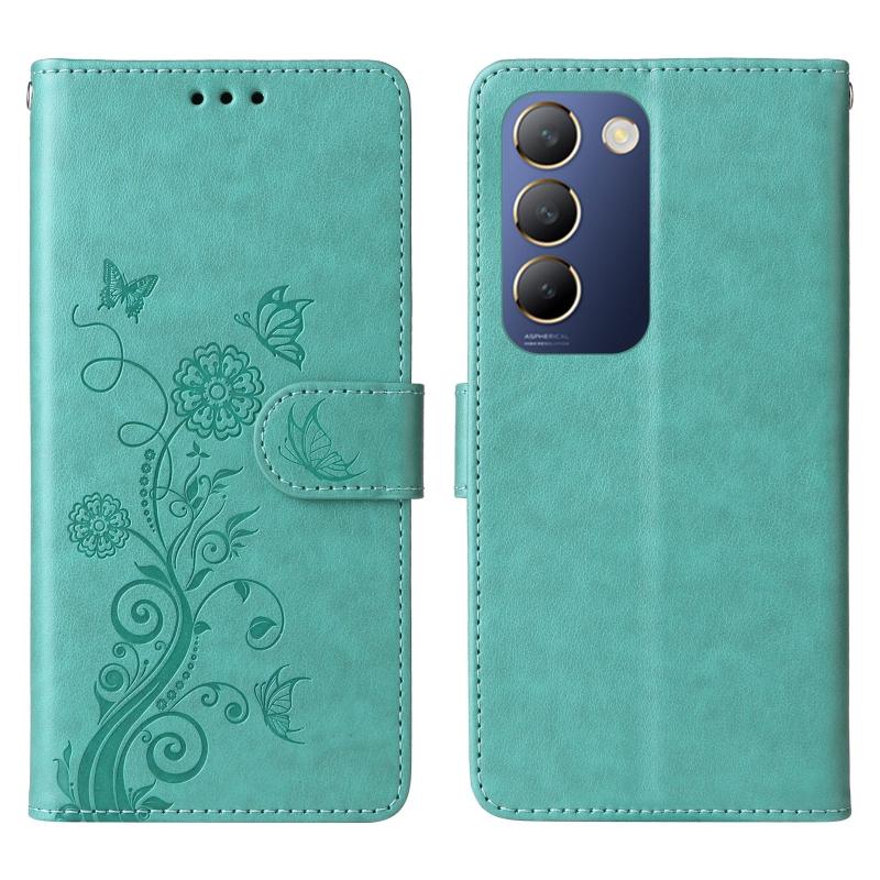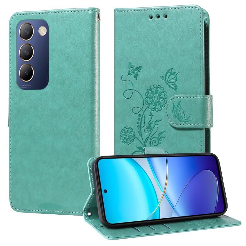 For vivo Y100 IDN / Y200E 5G Global Embossed Butterfly Flowers Leather Phone Case(Green)