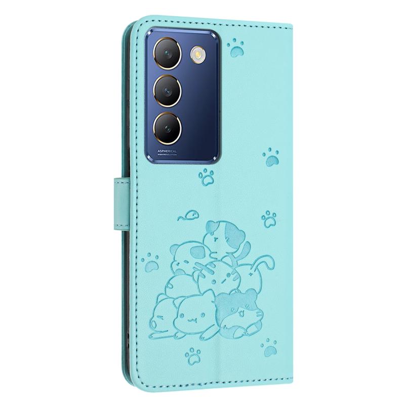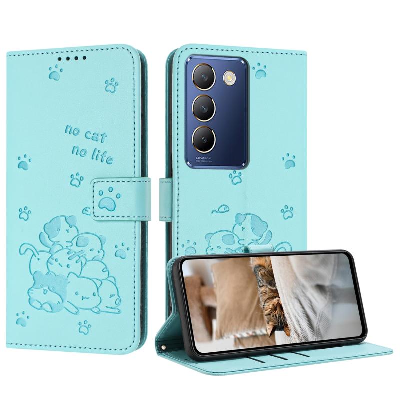 For vivo Y100 IDN / Y200e 5G Global Embossed Kitten Phone Leather Case with Lanyard(Mint Green)
