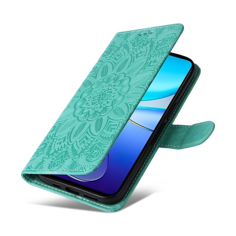 Θήκη τηλεφώνου από δέρμα με ανάγλυφο ηλίανθο για vivo Y100 IDN / Y200e 5G Global (πράσινο)
