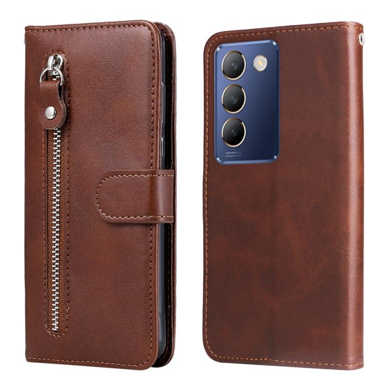 Θήκη τηλεφώνου από δέρμα με υφή μοσχαριού και φερμουάρ για vivo Y100 IDN / Y200e 5G Global (Χρυσό Ρόδι)