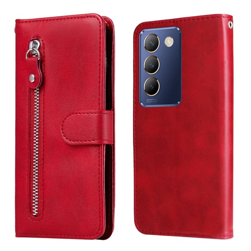 For vivo Y100 IDN / Y200e 5G Global Fashion Calf Texture Zipper Leather Phone Case(Red)