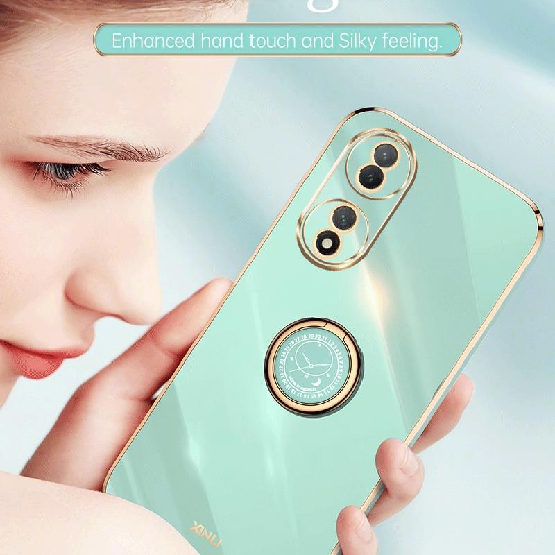 Θήκη τηλεφώνου για vivo Y100 XINLI με ευθείες άκρες, επιμετάλλωση 6D TPU με δακτύλιο στήριξης (Ροζ) (XINLI)