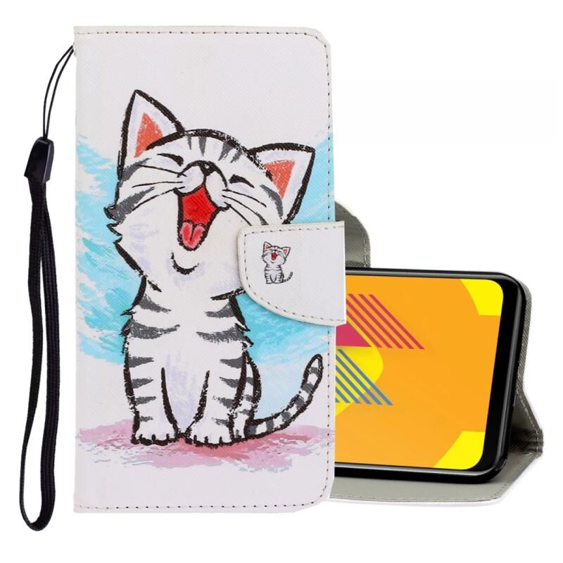 Θήκη για Vivo Y11 (2019) 3D πολύχρωμη ζωγραφική, οριζόντια αναδίπλωση, από δερματίνη PU με βάση & υποδοχές καρτών & πορτοφόλι (Κόκκινο Στόμα Γάτας)