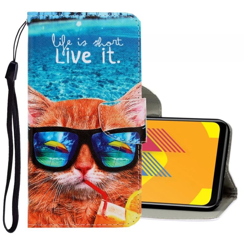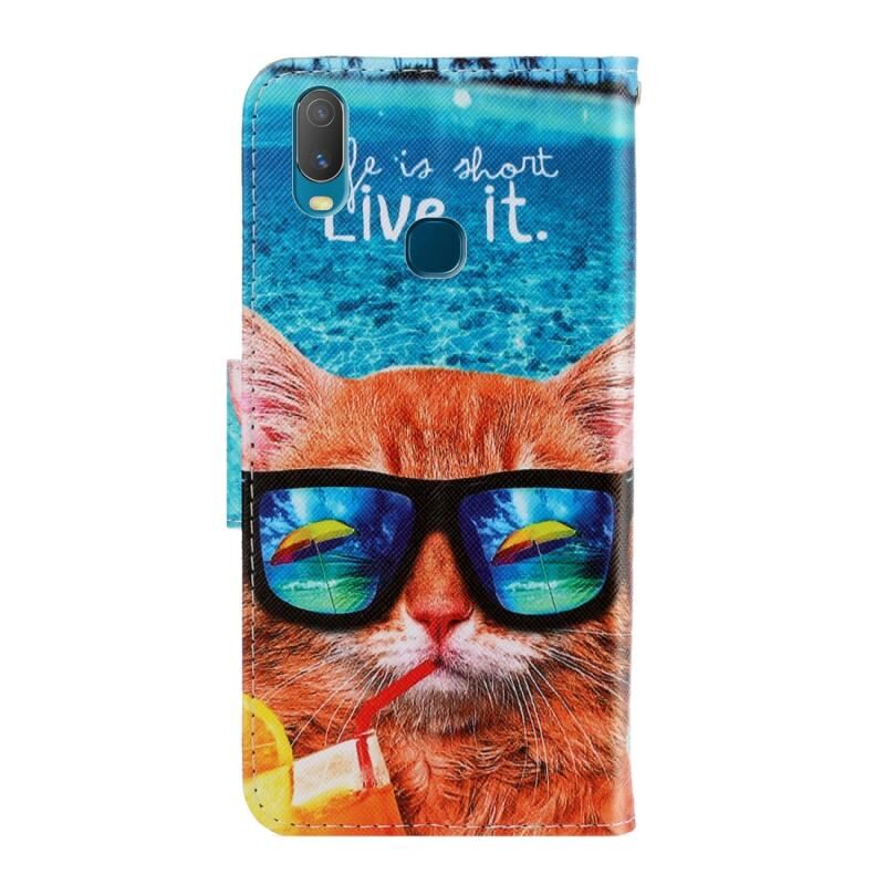 Θήκη δέρματος PU με οριζόντιο άνοιγμα και έγχρωμο σχέδιο 3D για Vivo Y11 (2019) με βάση στήριξης & υποδοχές καρτών & πορτοφόλι (Γάτα κάτω από το νερό)
