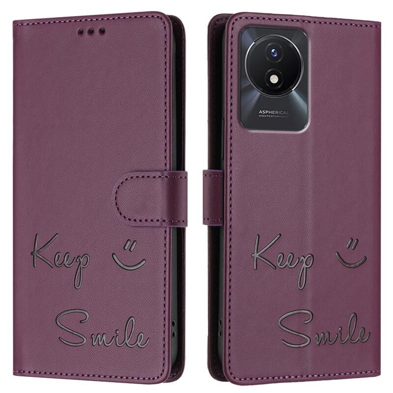 Για vivo Y11 2023 / Y02T Χαμόγελο ανάγλυφο RFID δερμάτινη θήκη τηλεφώνου (Violet)