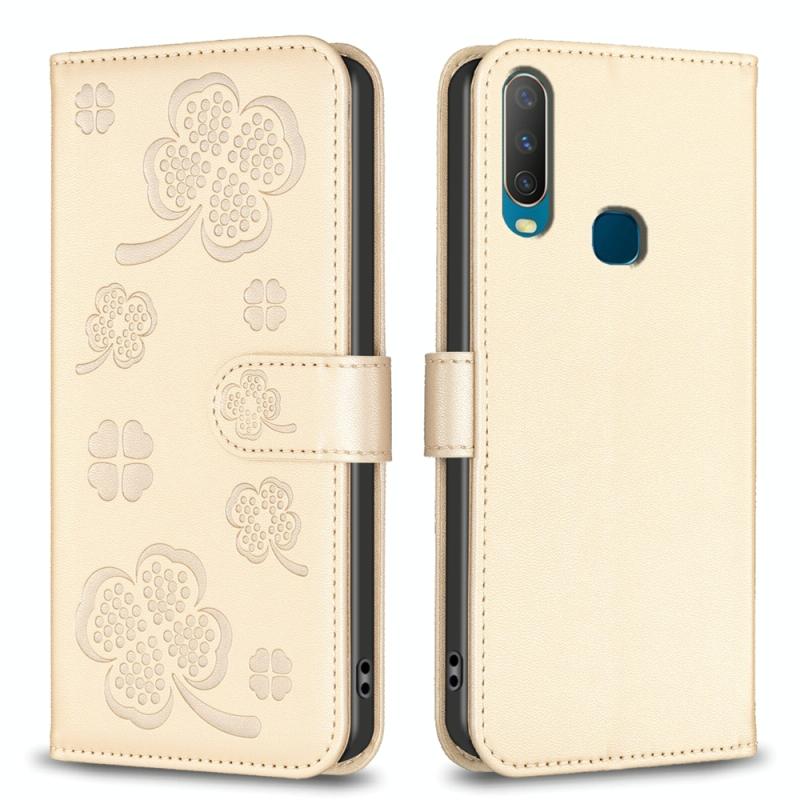 For vivo Y11 / Y12 / Y15 / Y17 Four-leaf Embossed Leather Phone Case(Gold)