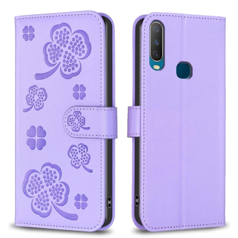For vivo Y11 / Y12 / Y15 / Y17 Four-leaf Embossed Leather Phone Case(Purple)