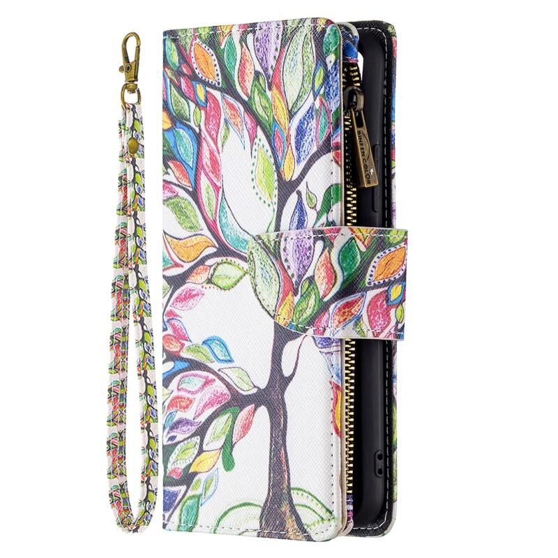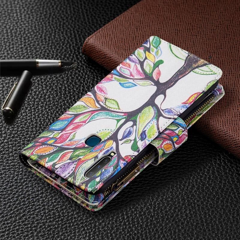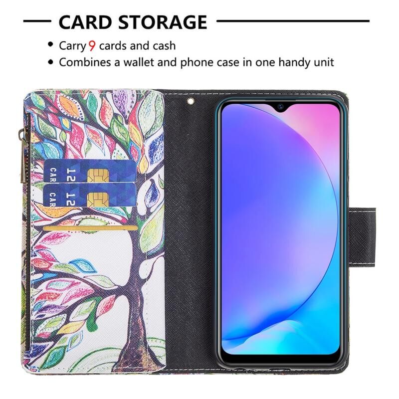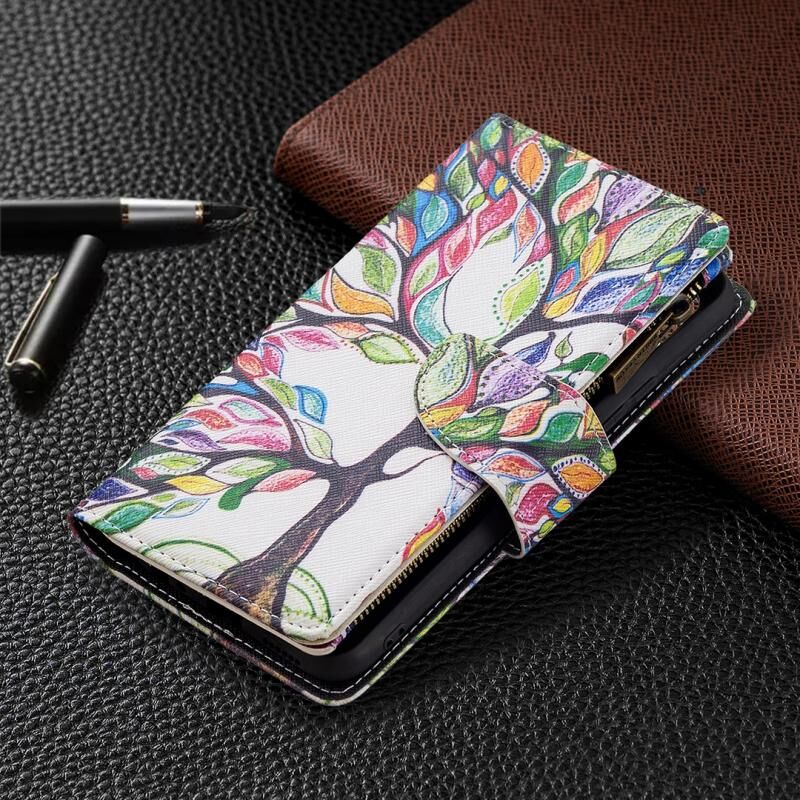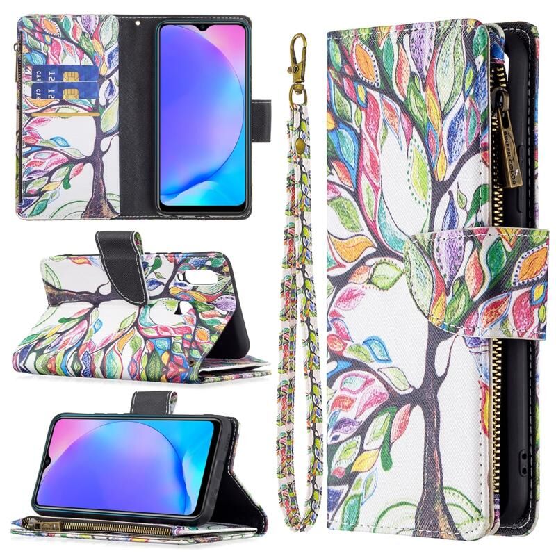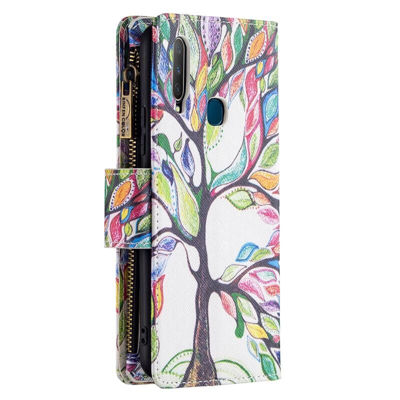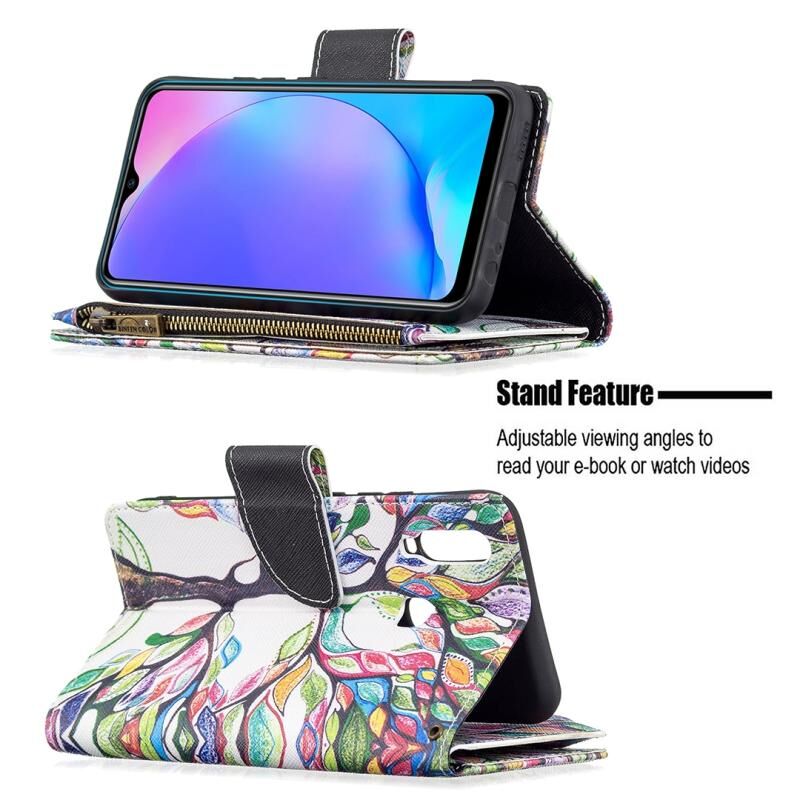 Θήκη δέρματος οριζόντιας αναδίπλωσης με φερμουάρ και σχέδια ζωγραφικής για vivo Y11/Y15/Y12/Y17 με βάση για κάρτες και πορτοφόλι (Μεγάλο Δέντρο)