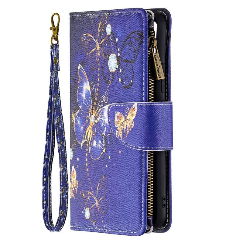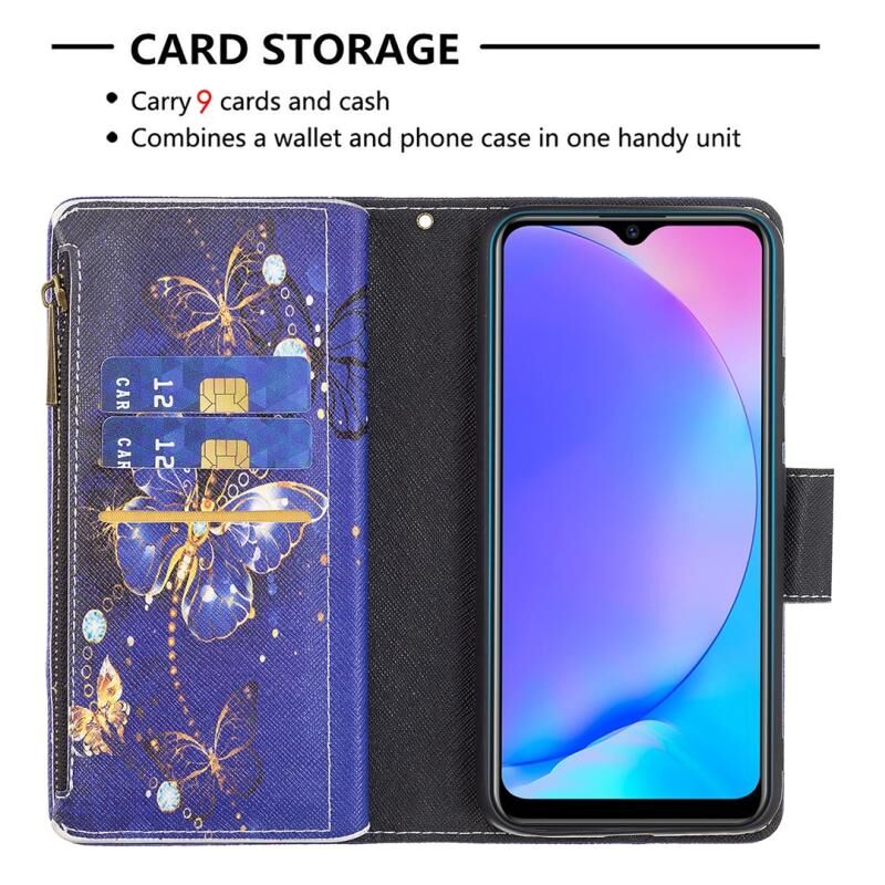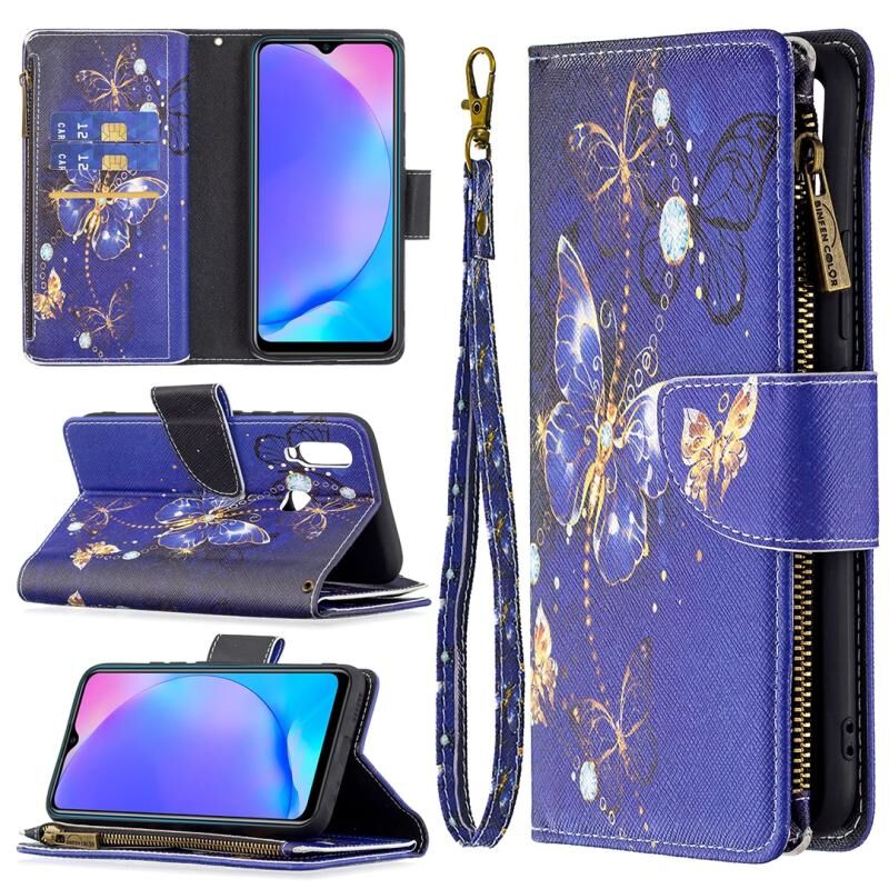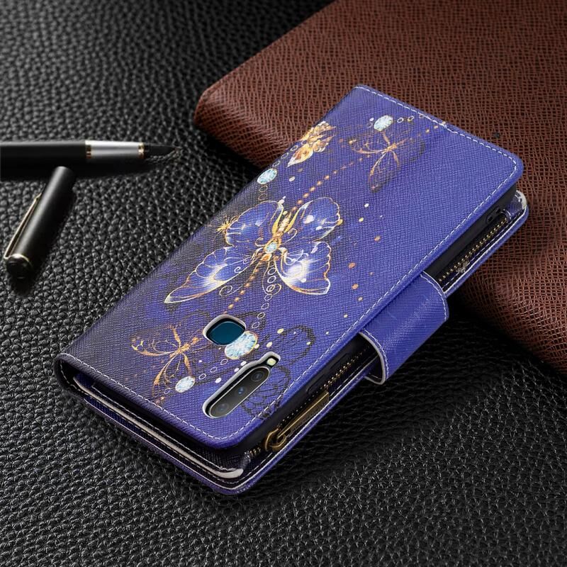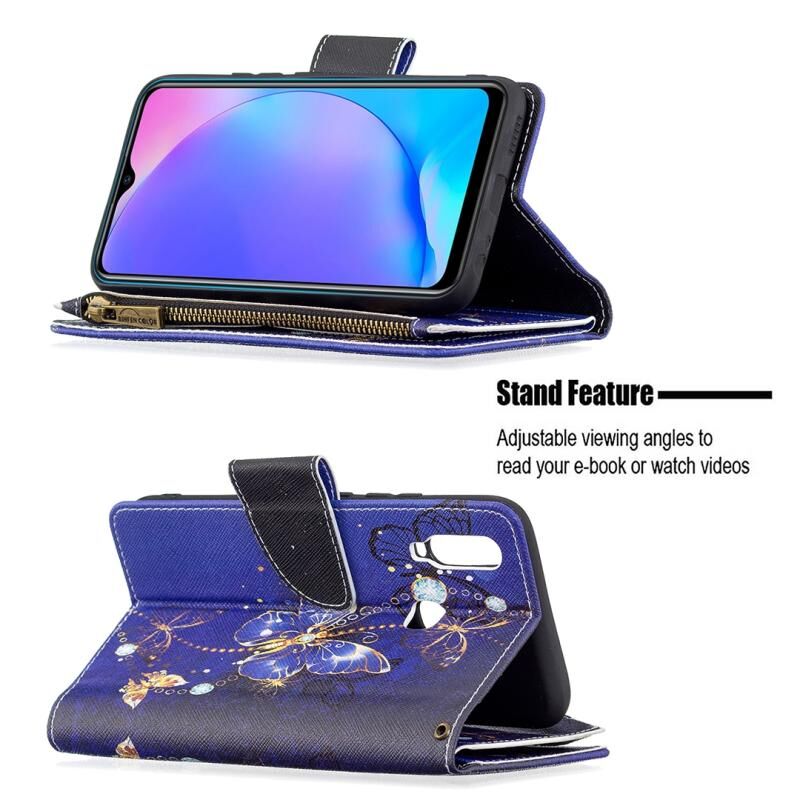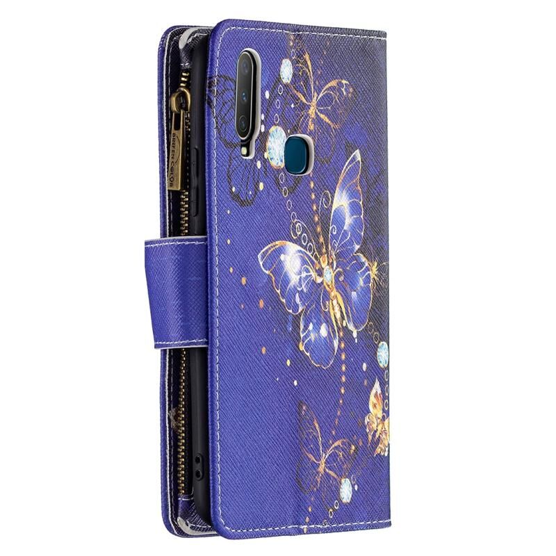 Θήκη δέρματος οριζόντιας αναδίπλωσης με φερμουάρ και σχέδια ζωγραφικής για vivo Y11/Y15/Y12/Y17 με βάση για κάρτες και πορτοφόλι (Μωβ Πεταλούδα)