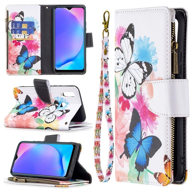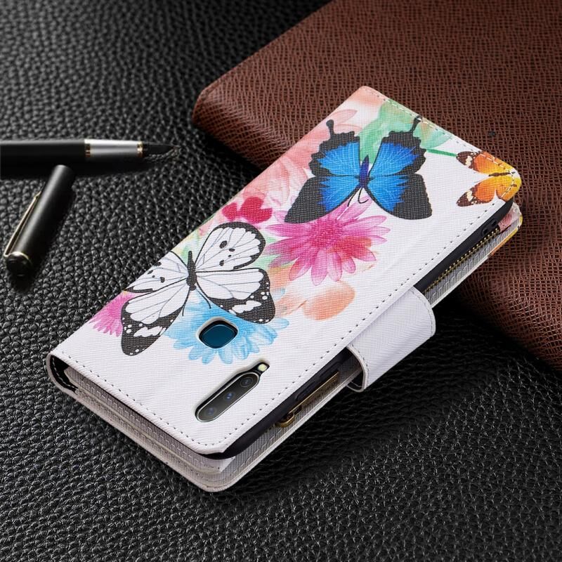 Θήκη δέρματος οριζόντιας αναδίπλωσης με φερμουάρ και σχέδιο ζωγραφικής για vivo Y11/Y15/Y12/Y17 με βάση για κάρτες και πορτοφόλι (Δύο Πεταλούδες)