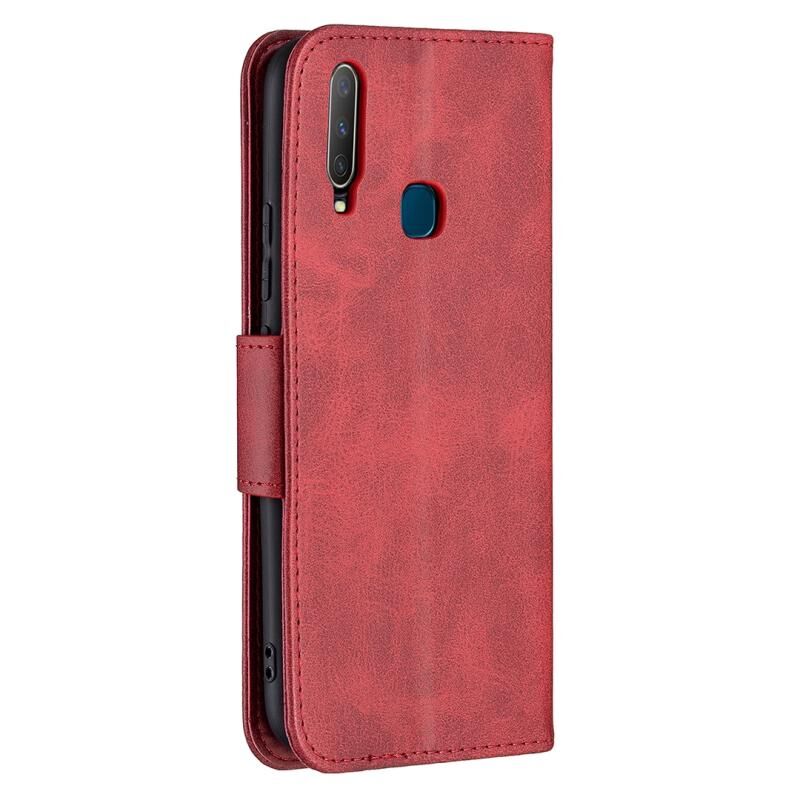 Για το vivo Y11 / Y15 / Y12 / Y17 Ρετρό Lambskin υφή καθαρό χρώμα οριζόντια Flip PU δέρμα υπόθεση με θήκη & υποδοχές για κάρτες & πορτοφόλι & κορδόνι (κόκκινο)