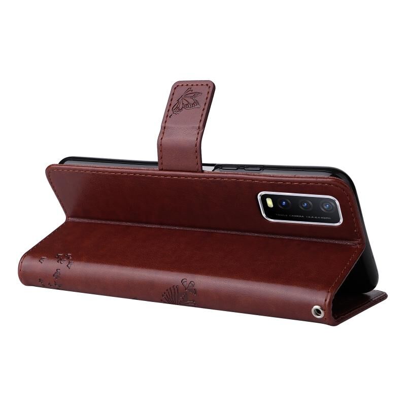 Για vivo Y11s/Y12A/Y12s/Y20/Y20A/Y20s/Y20G/Y20SG Tree & Cat Embossing Pattern Horizontal Flip PU Leather Case με θήκη & υποδοχές για κάρτες & πορτοφόλι & κορδόνι(Καφέ)